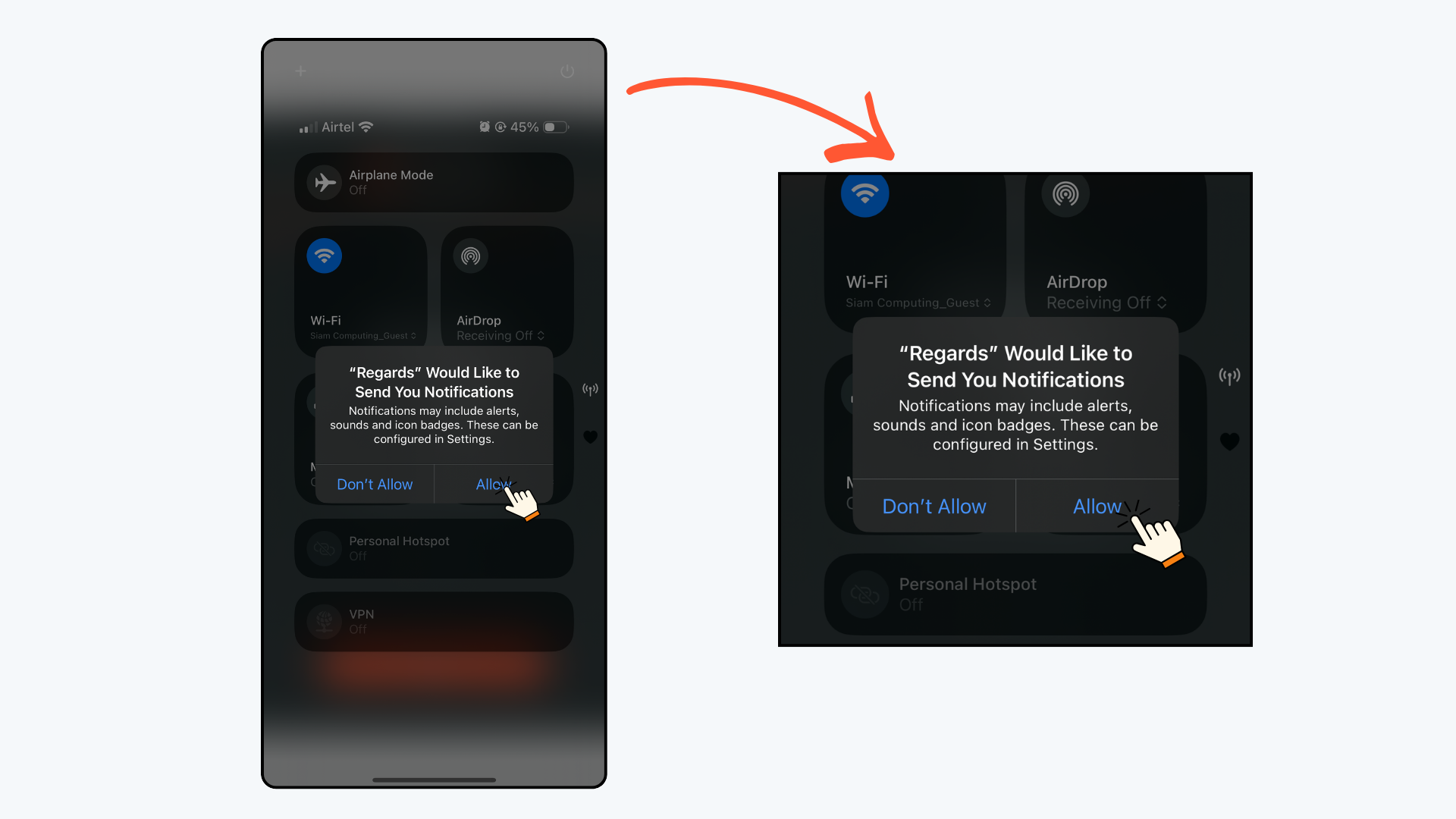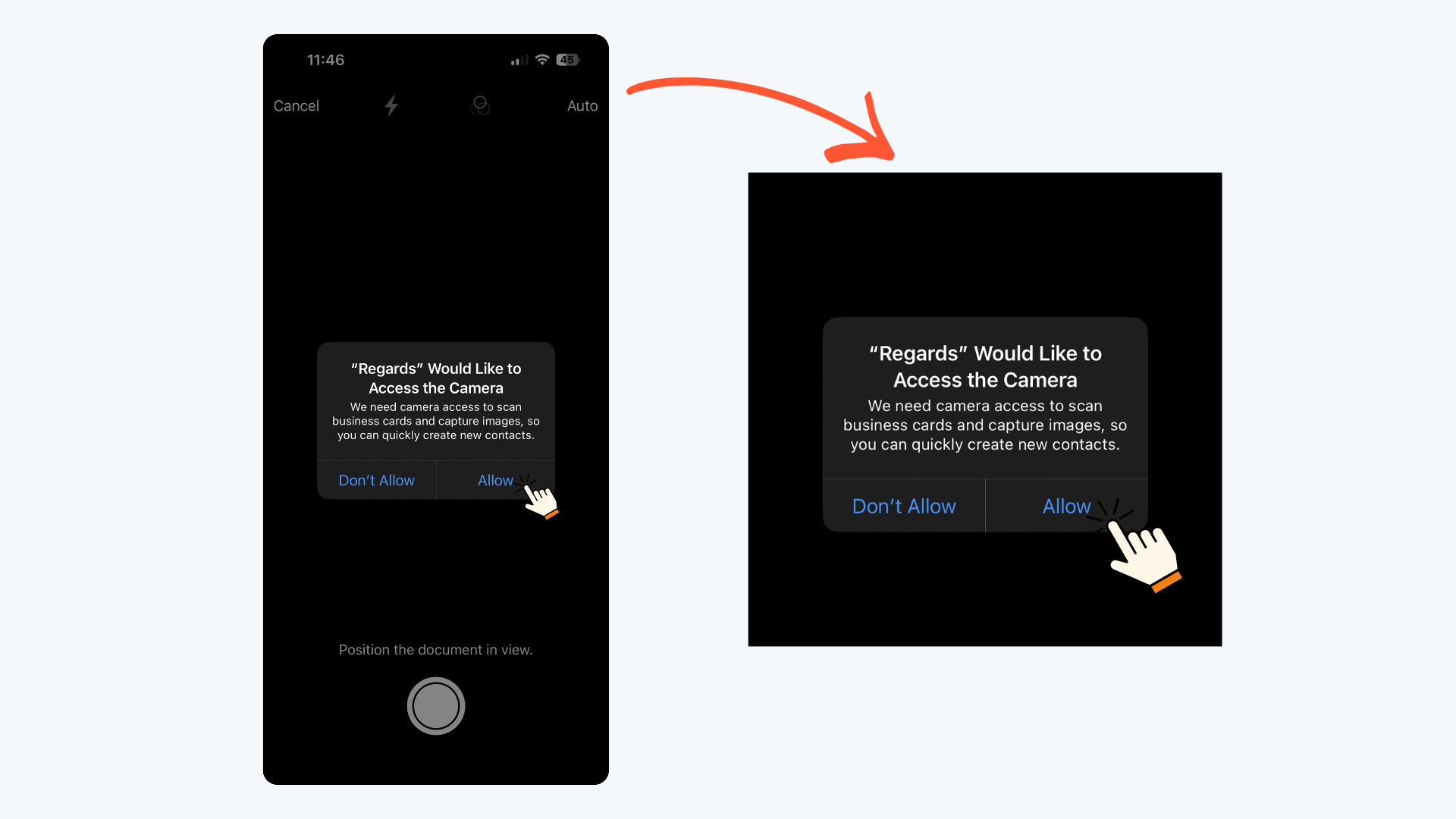 When you open Regards AI for the first time, your iPhone will ask for certain permissions.