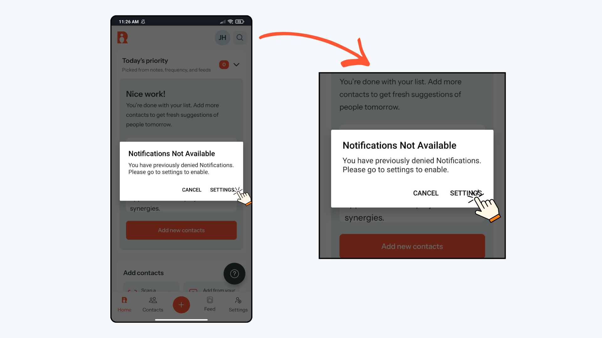 - For Notifications, click Allow so you can receive Daily Priorities and follow-up reminders.