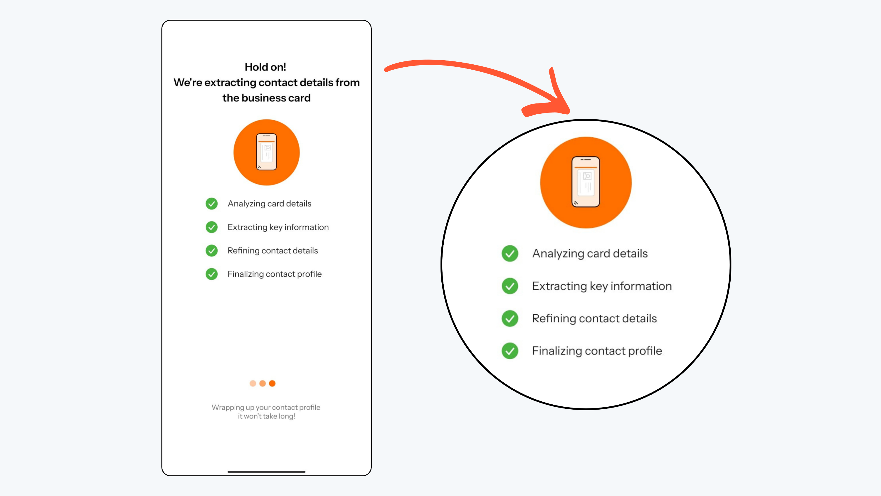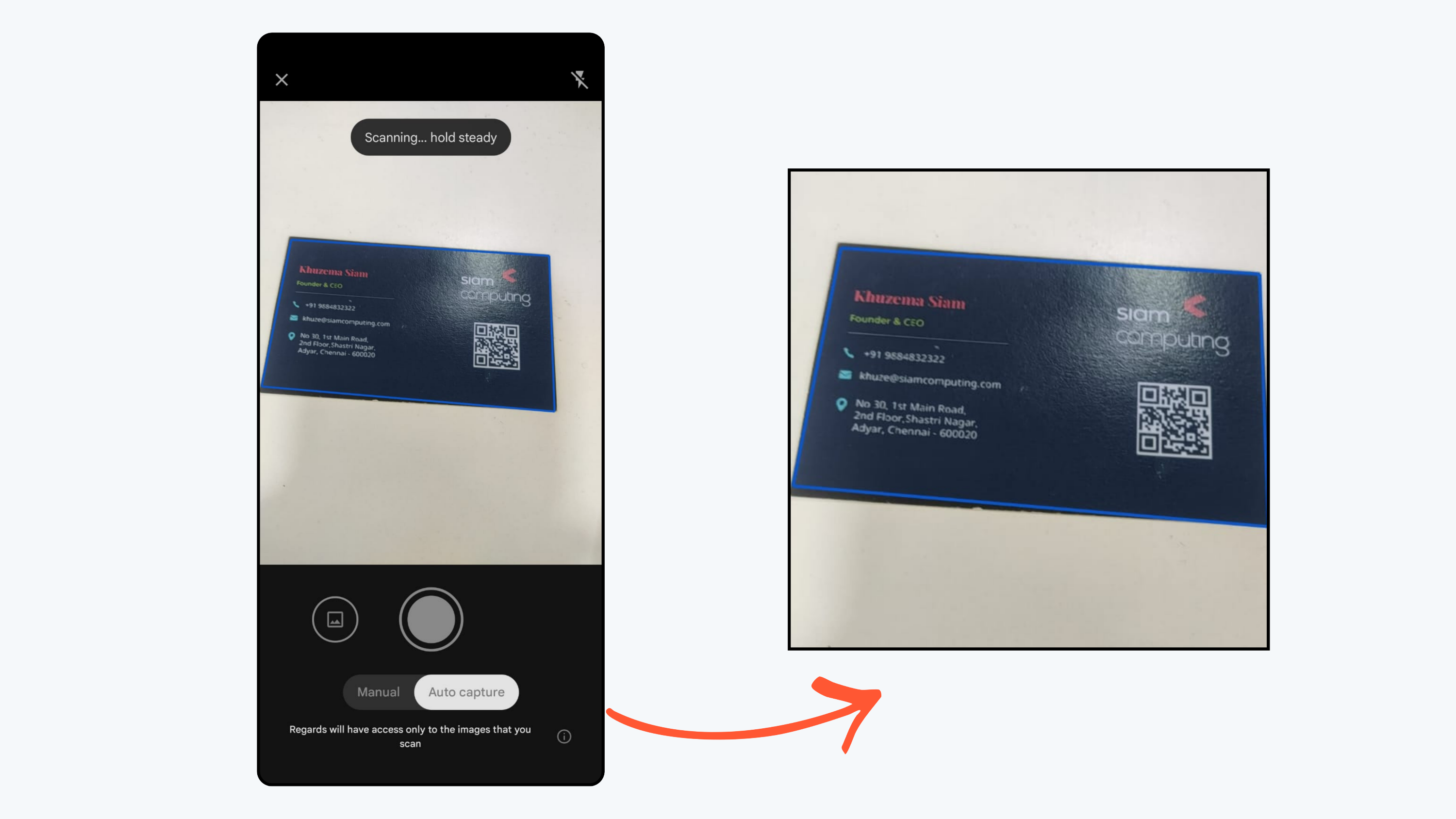 - Regards will extract your contact details from the business card.