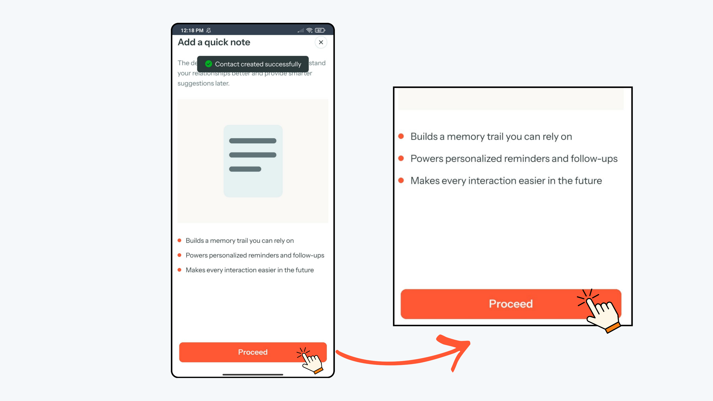 - After saving the contact, you will be directed to add a note. On the Notes page, click Proceed to continue.