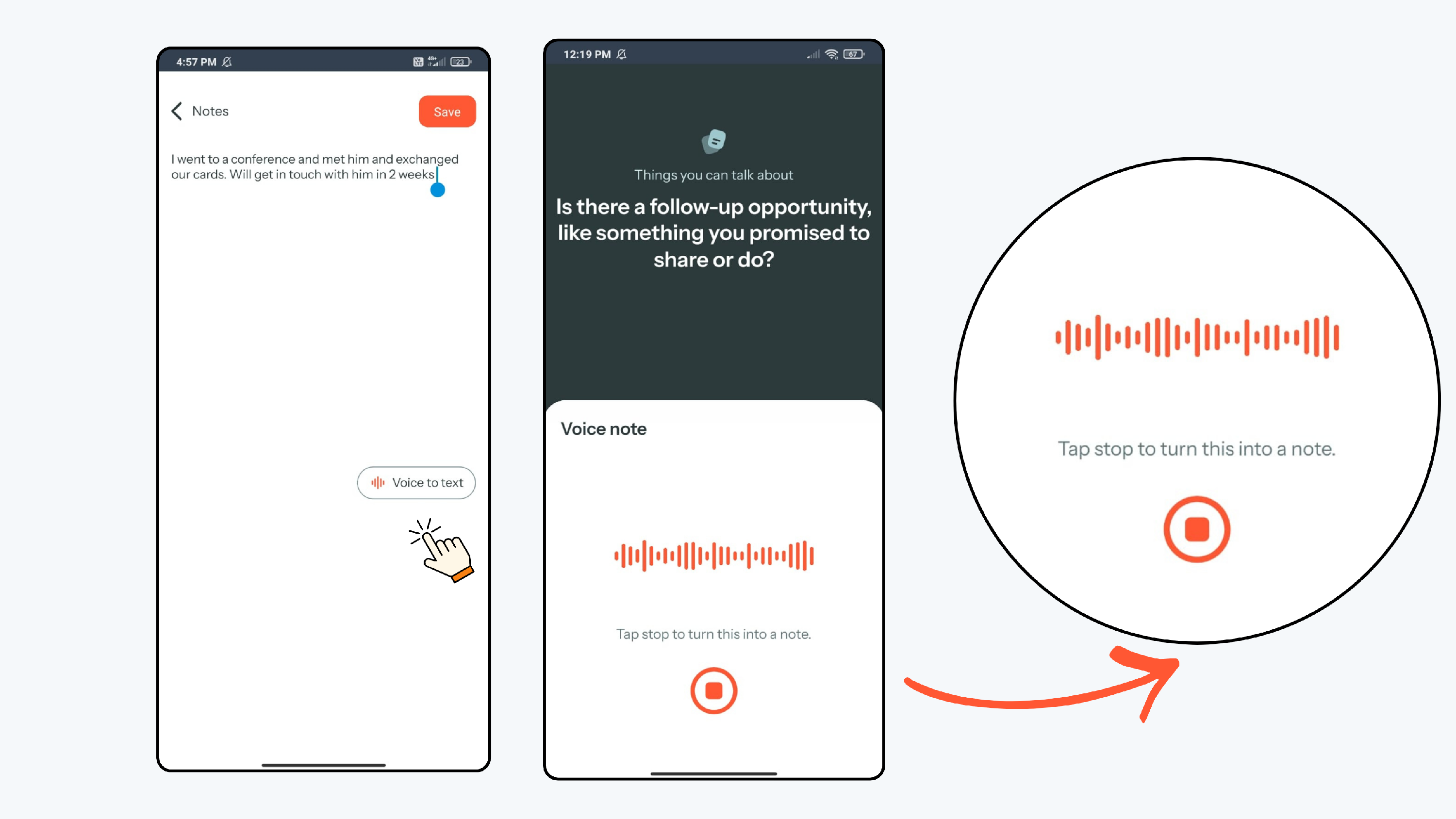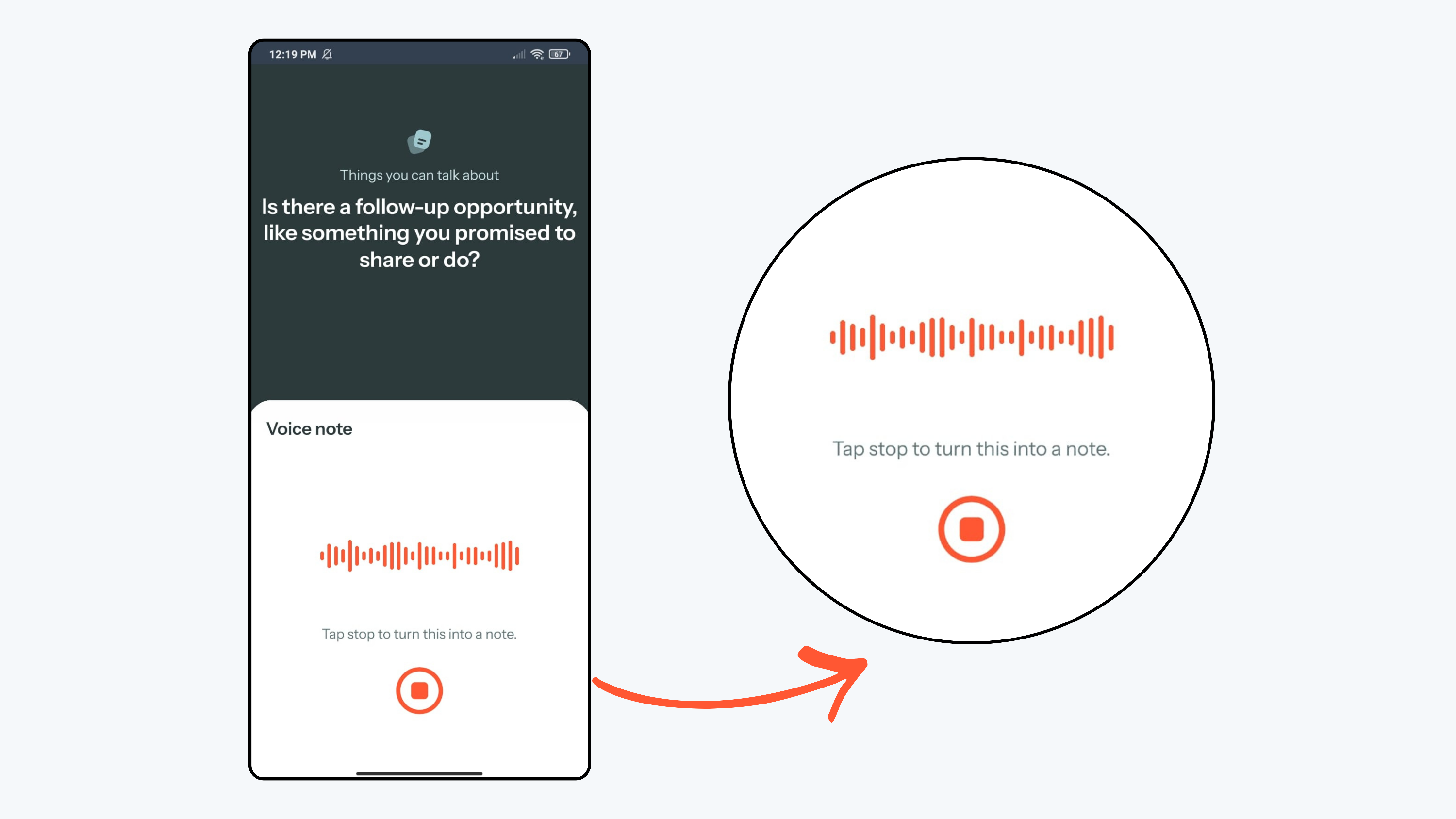 - Click the Voice to text option to record a message. The voice note is automatically transcribed.