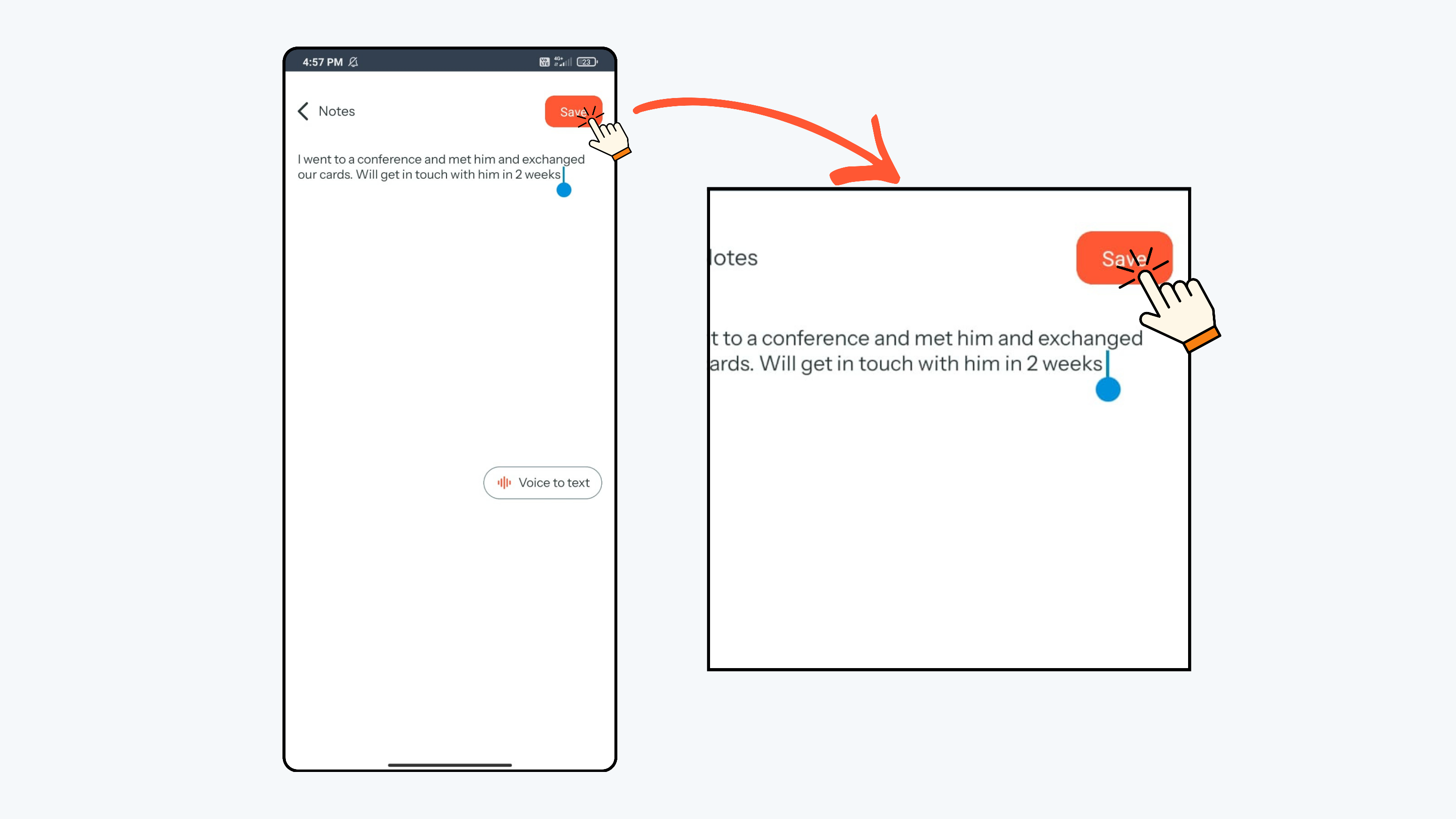 - You can type a note manually and Click Save.