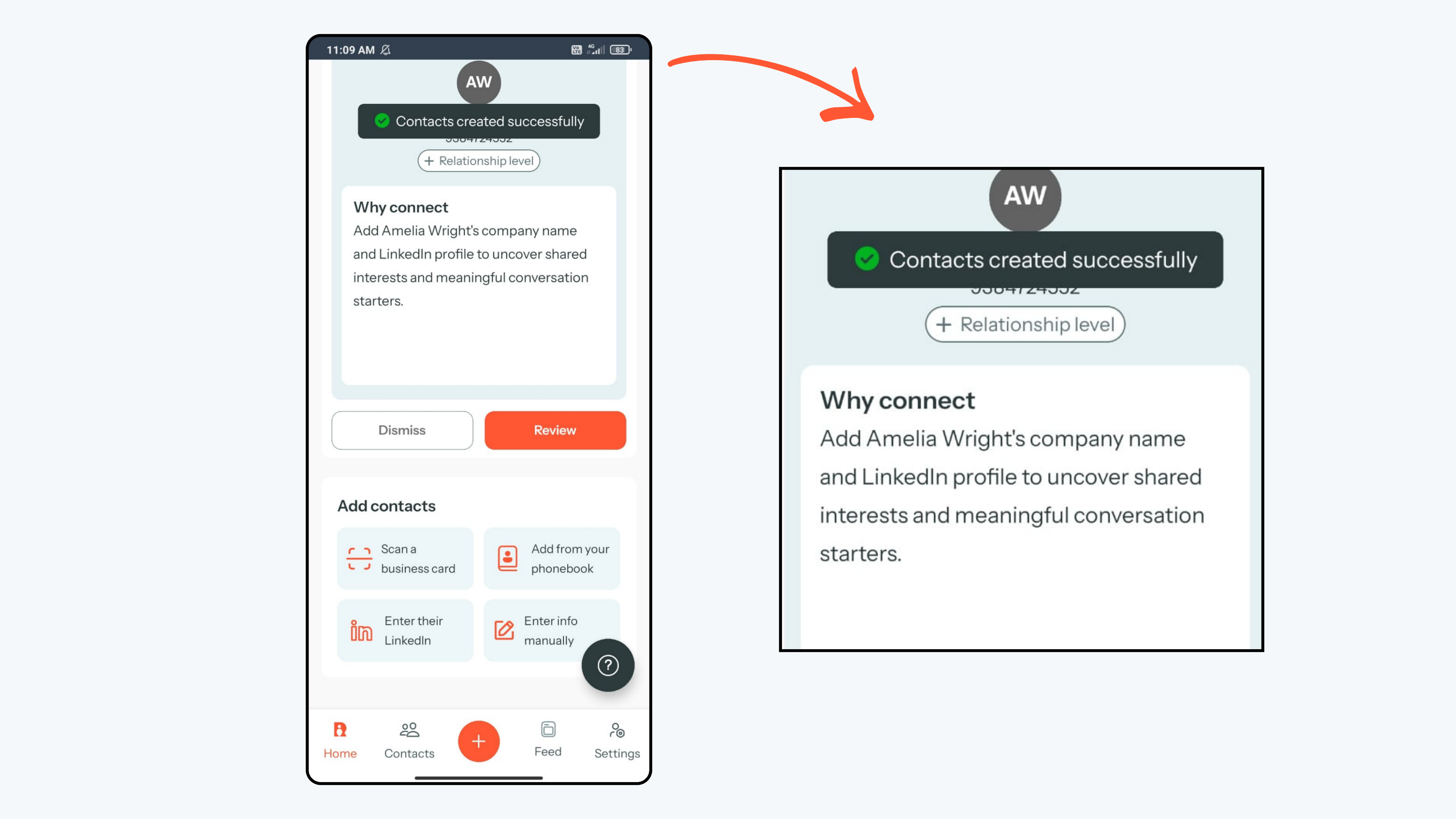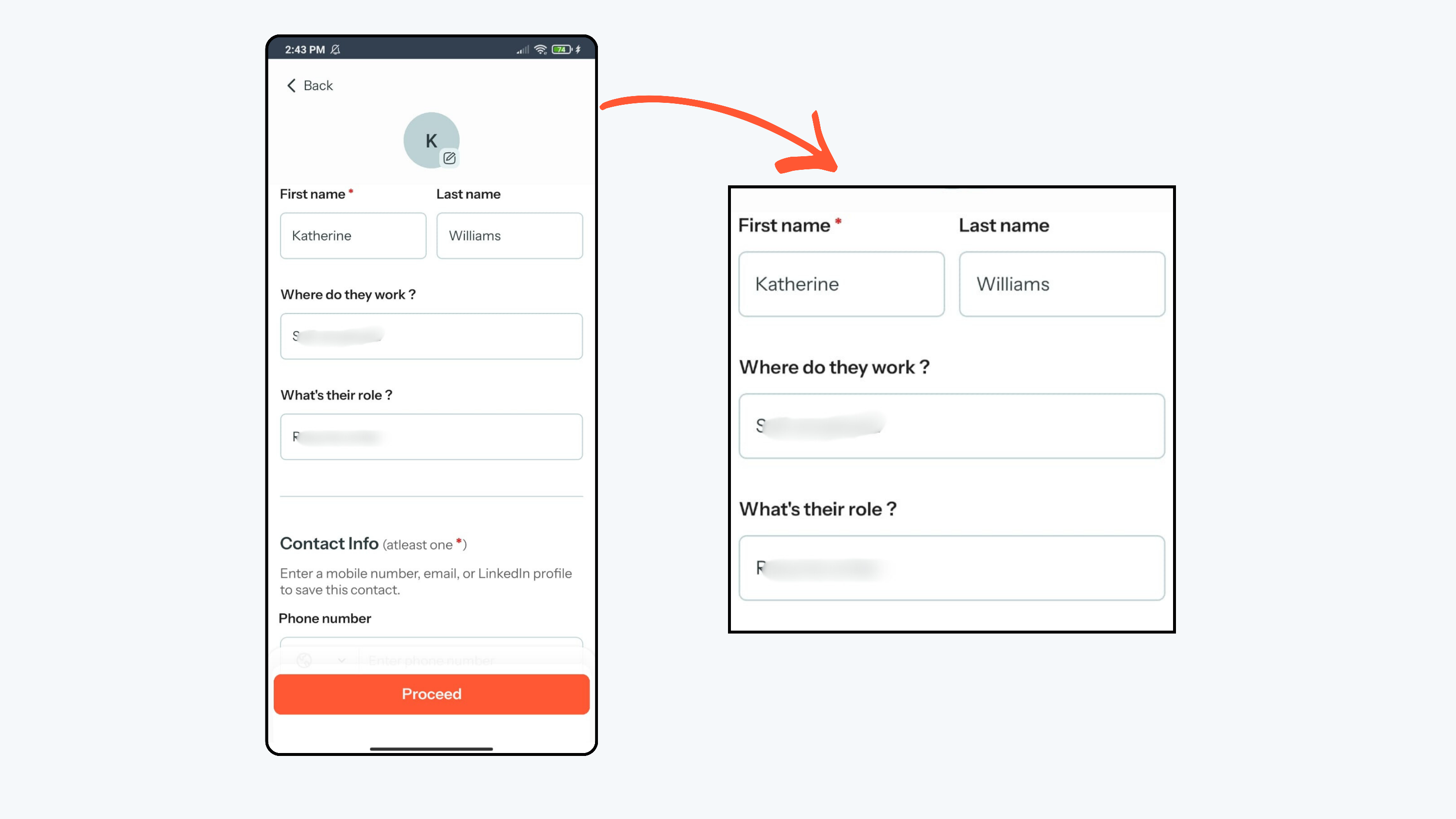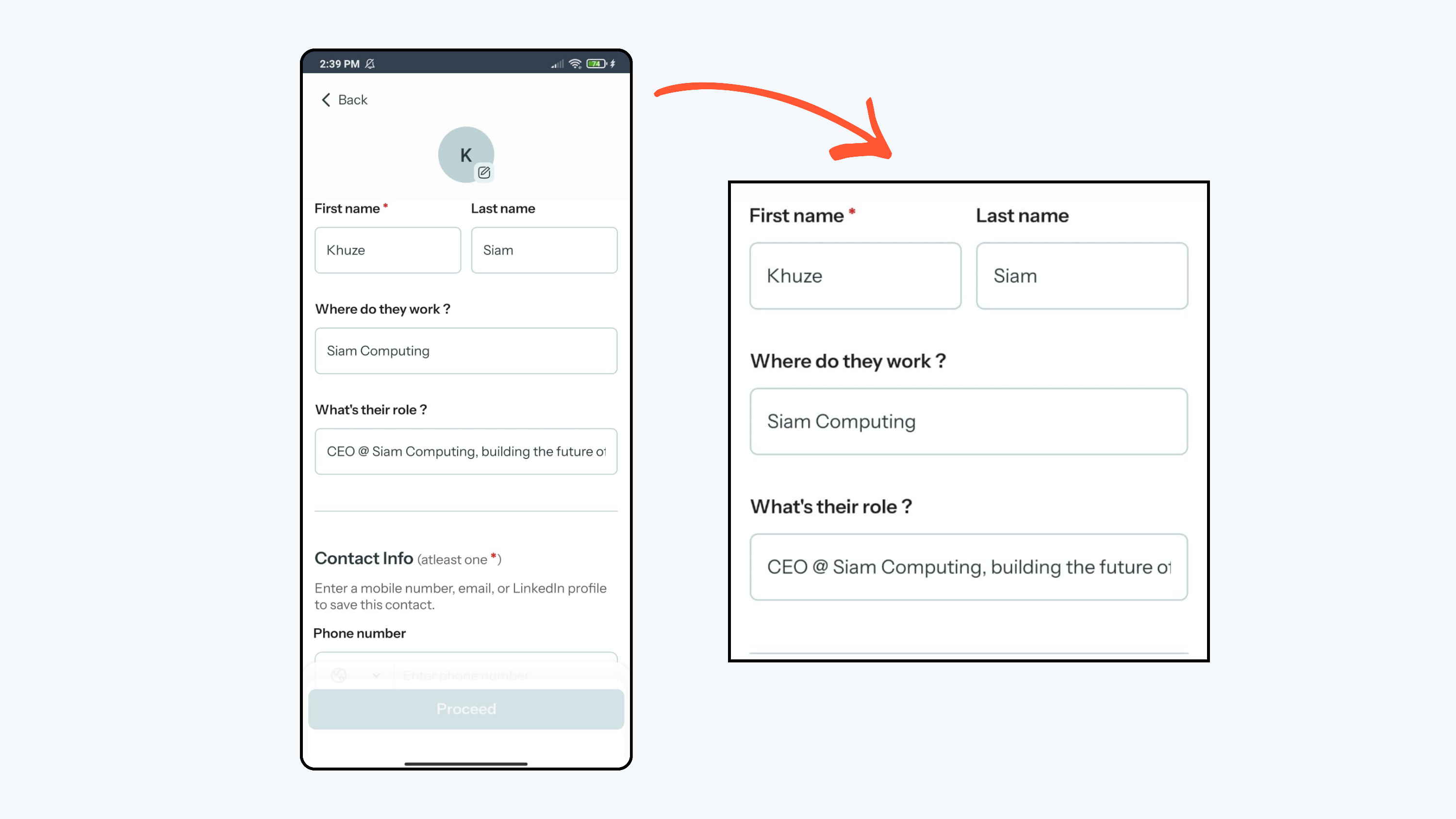 - Review the extracted information carefully on the screen. If everything looks correct, click Proceed to save the contact. If you want you can edit as well.