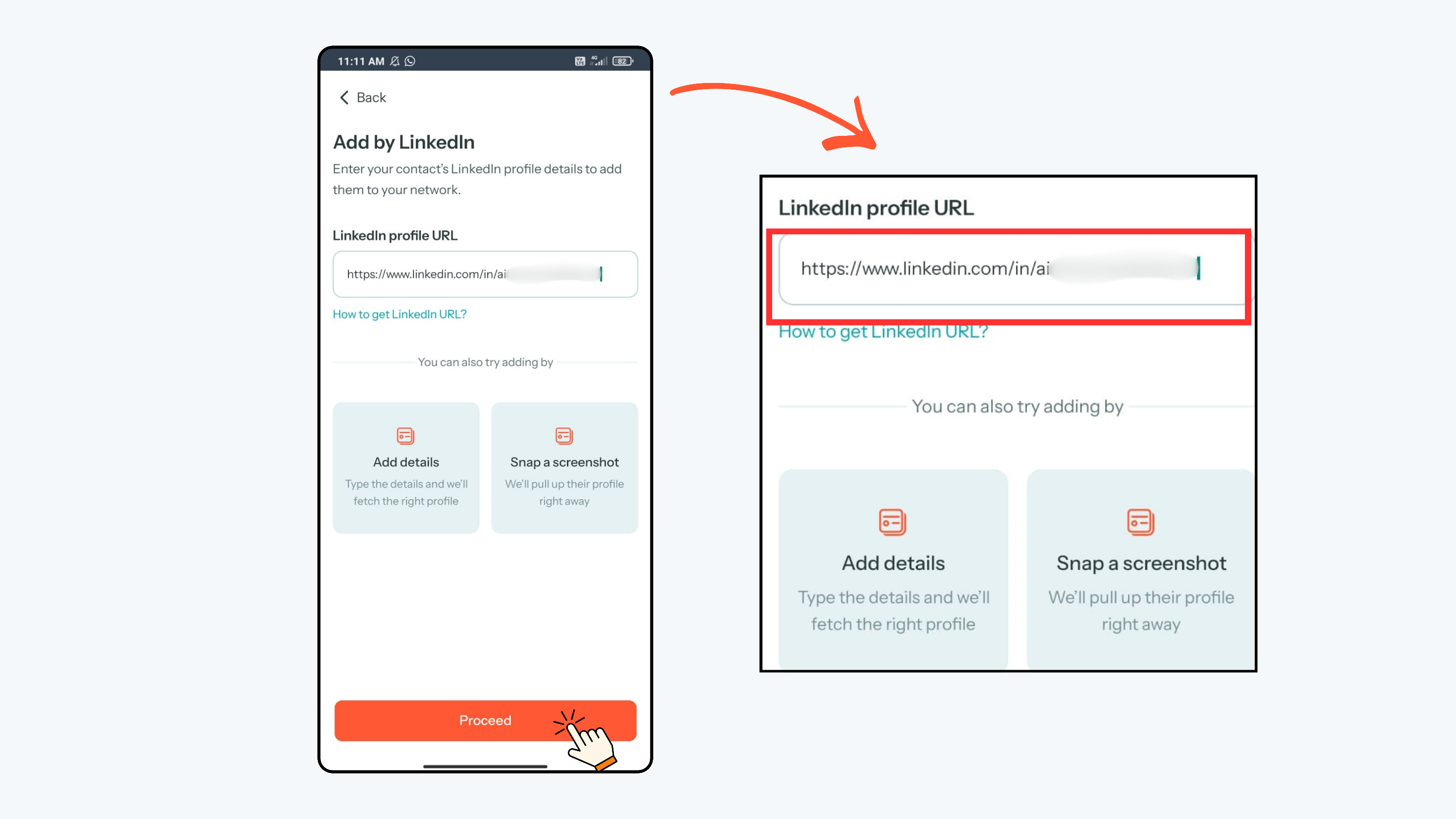 Paste the LinkedIn profile URL into the provided field and click Proceed.