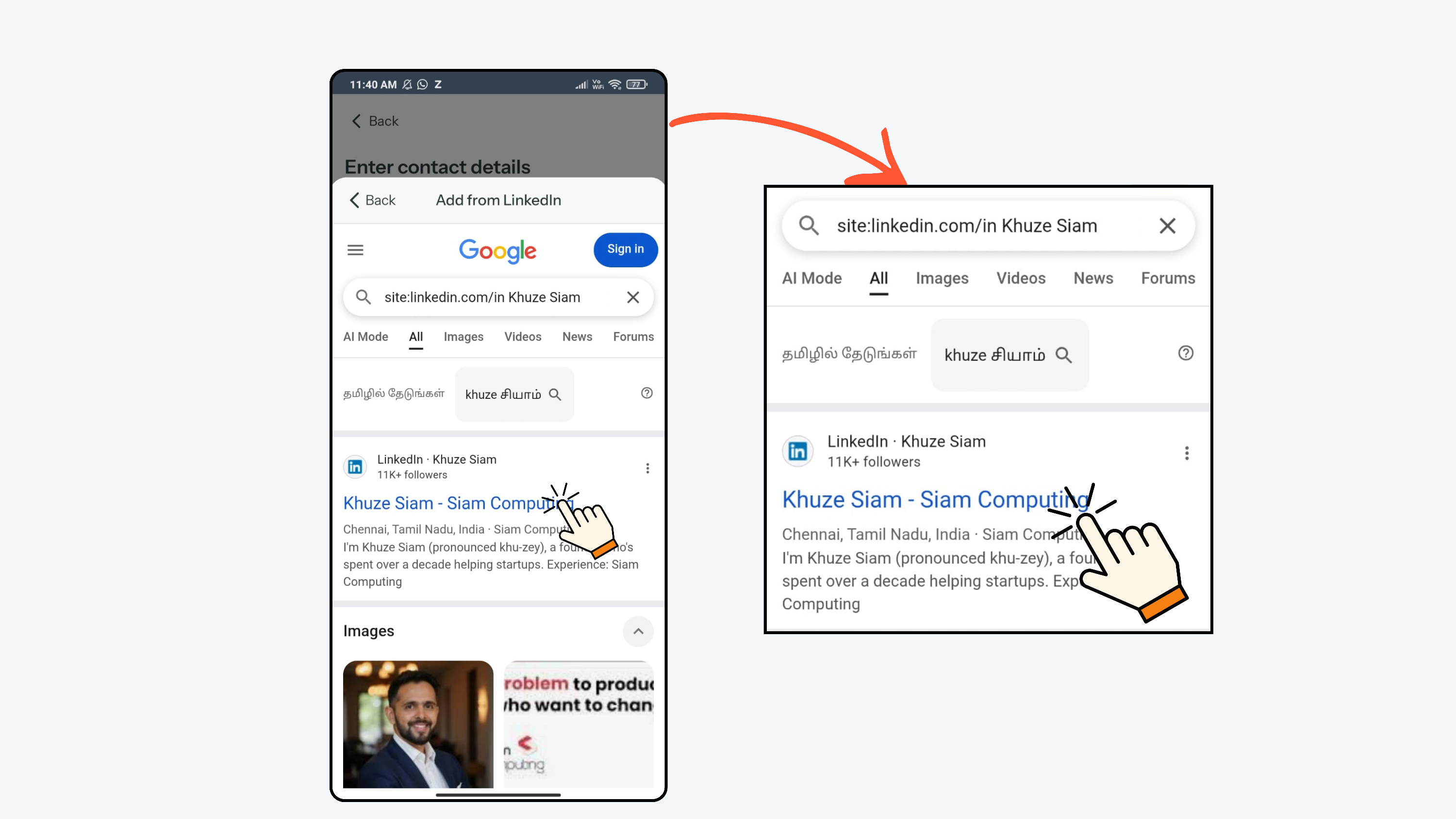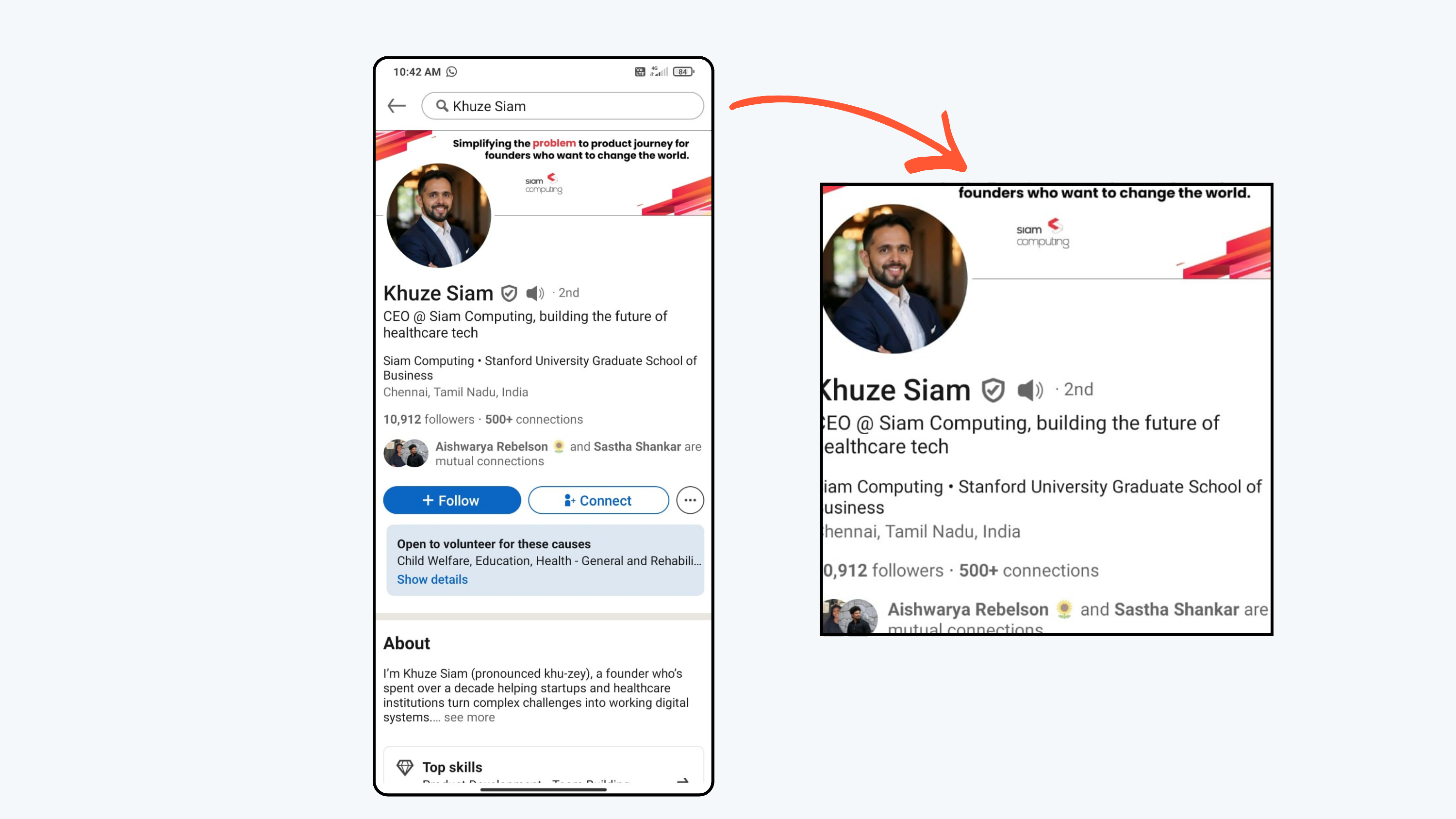 Note: To find the LinkedIn profile URL, open the LinkedIn app and go to the connection’s profile page. Click the three dots below the follower or connection count, then click Share and select Copy link. The profile URL will be copied to your clipboard, and you can paste it here.