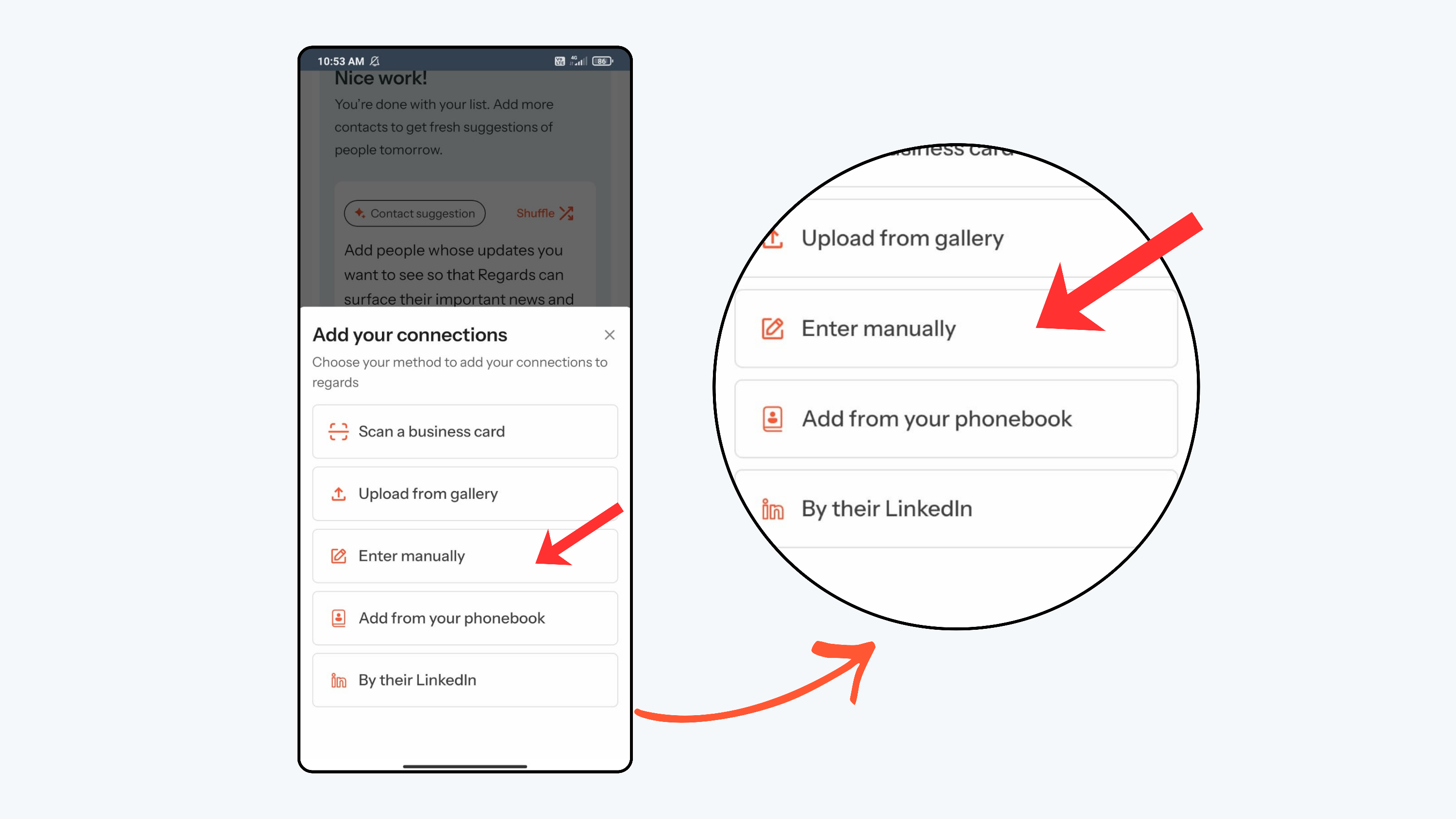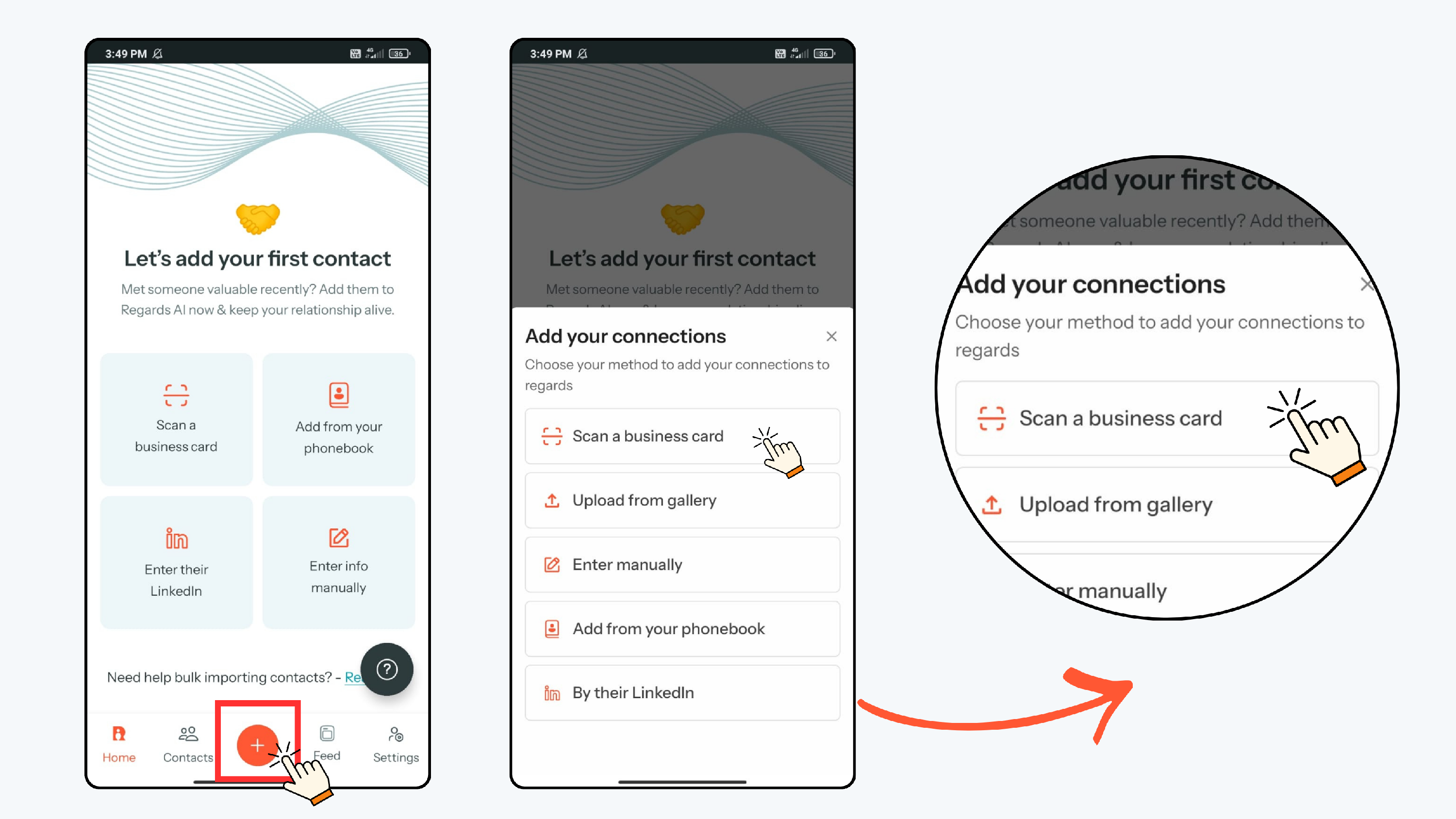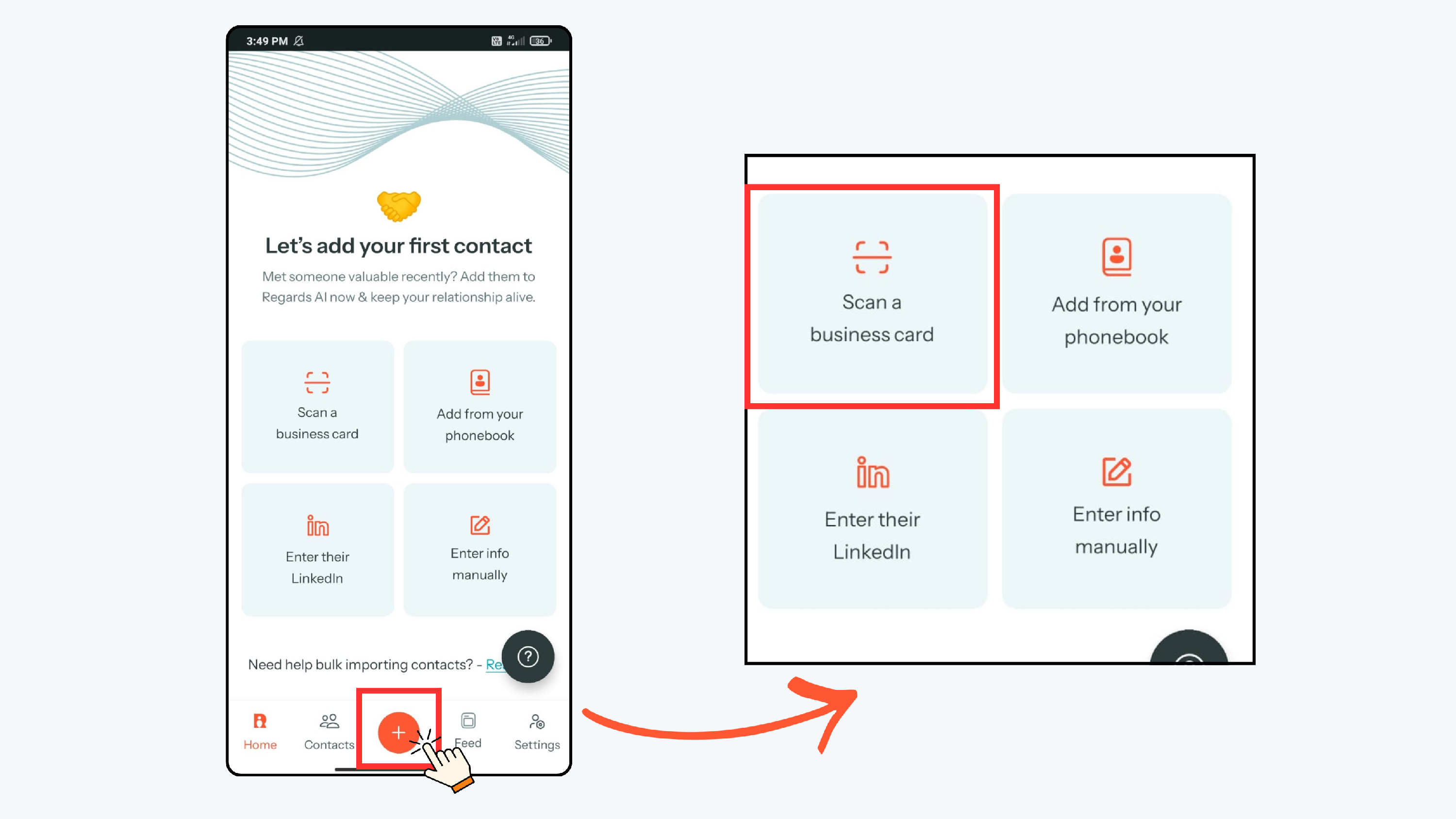 You can add contacts to Regards AI in four different ways: