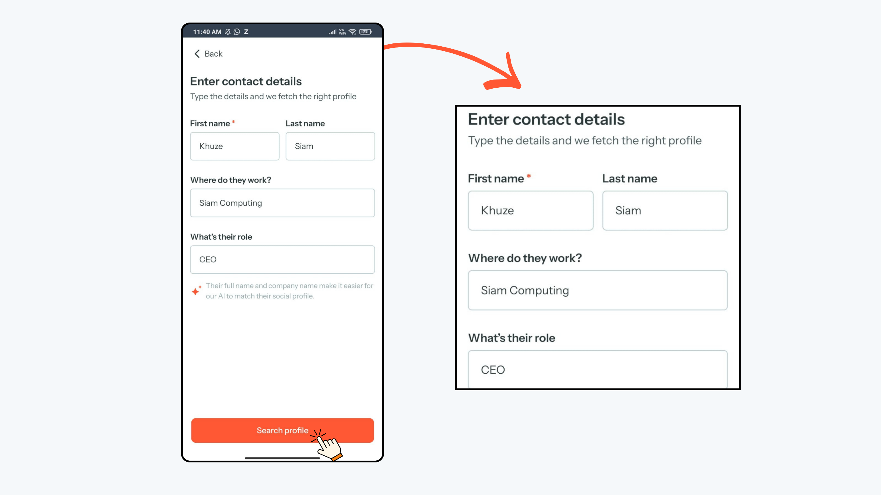 - Regards AI will read the screenshot and suggest a matching LinkedIn profile.