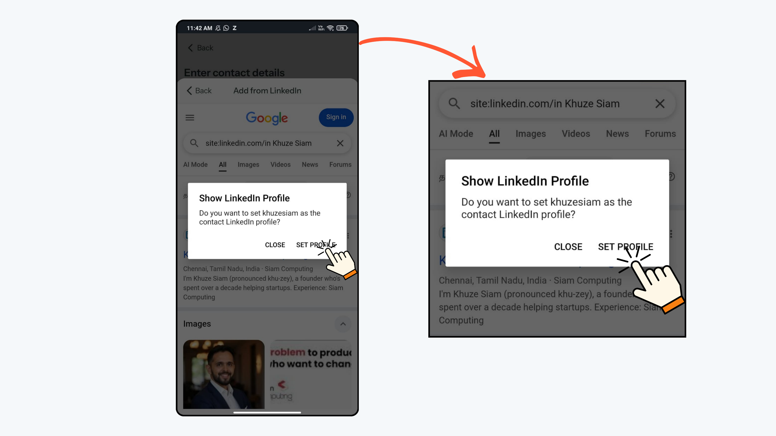 - Regards AI will open a Google search for your profile. You can then select your LinkedIn profile from the search results.