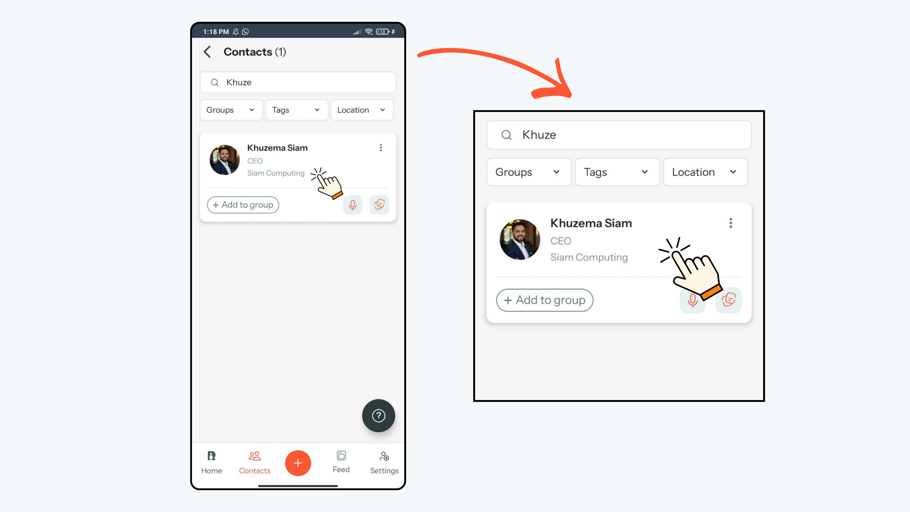 Go to the Contacts page by clicking the second icon at the bottom of the screen.