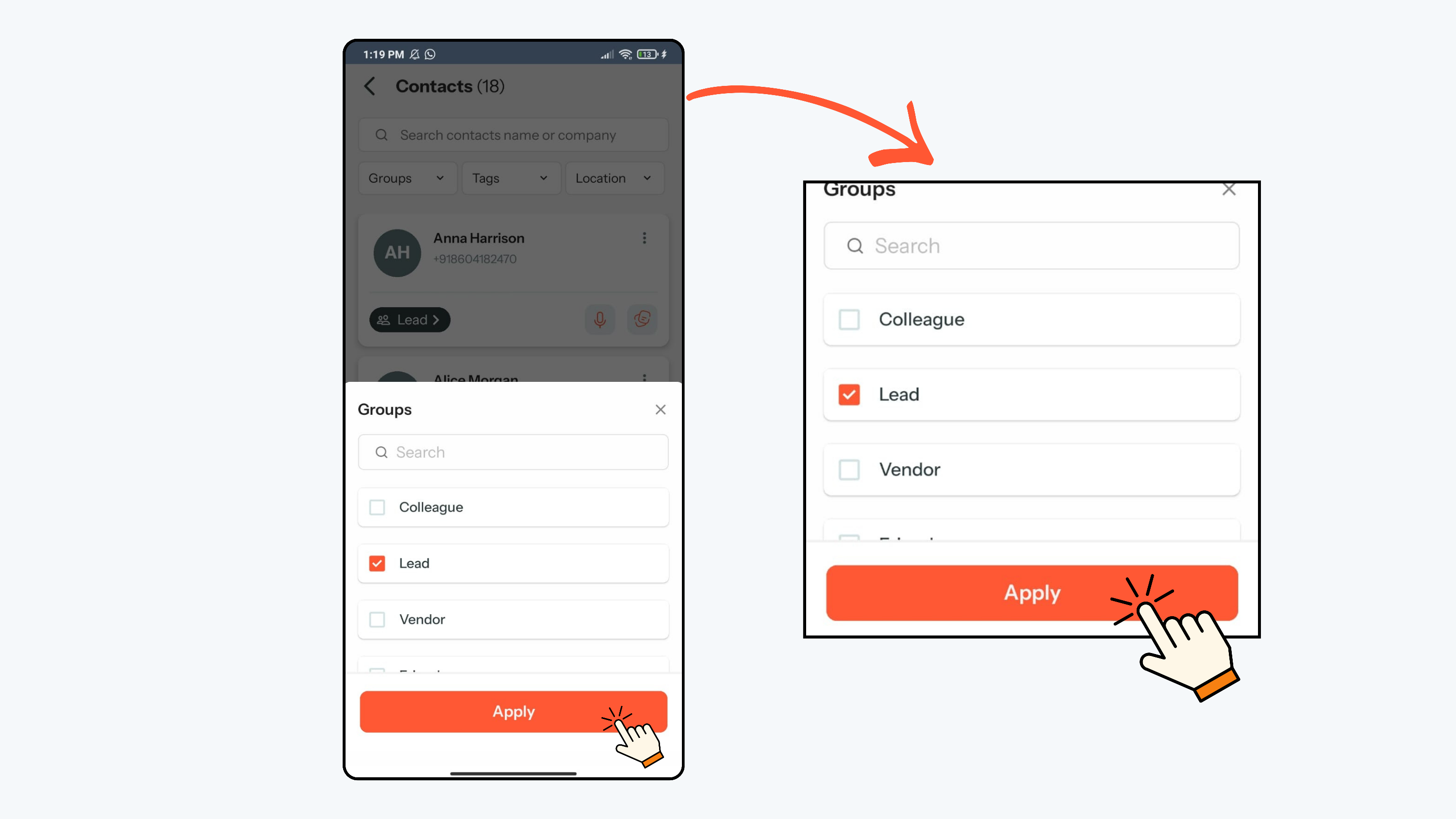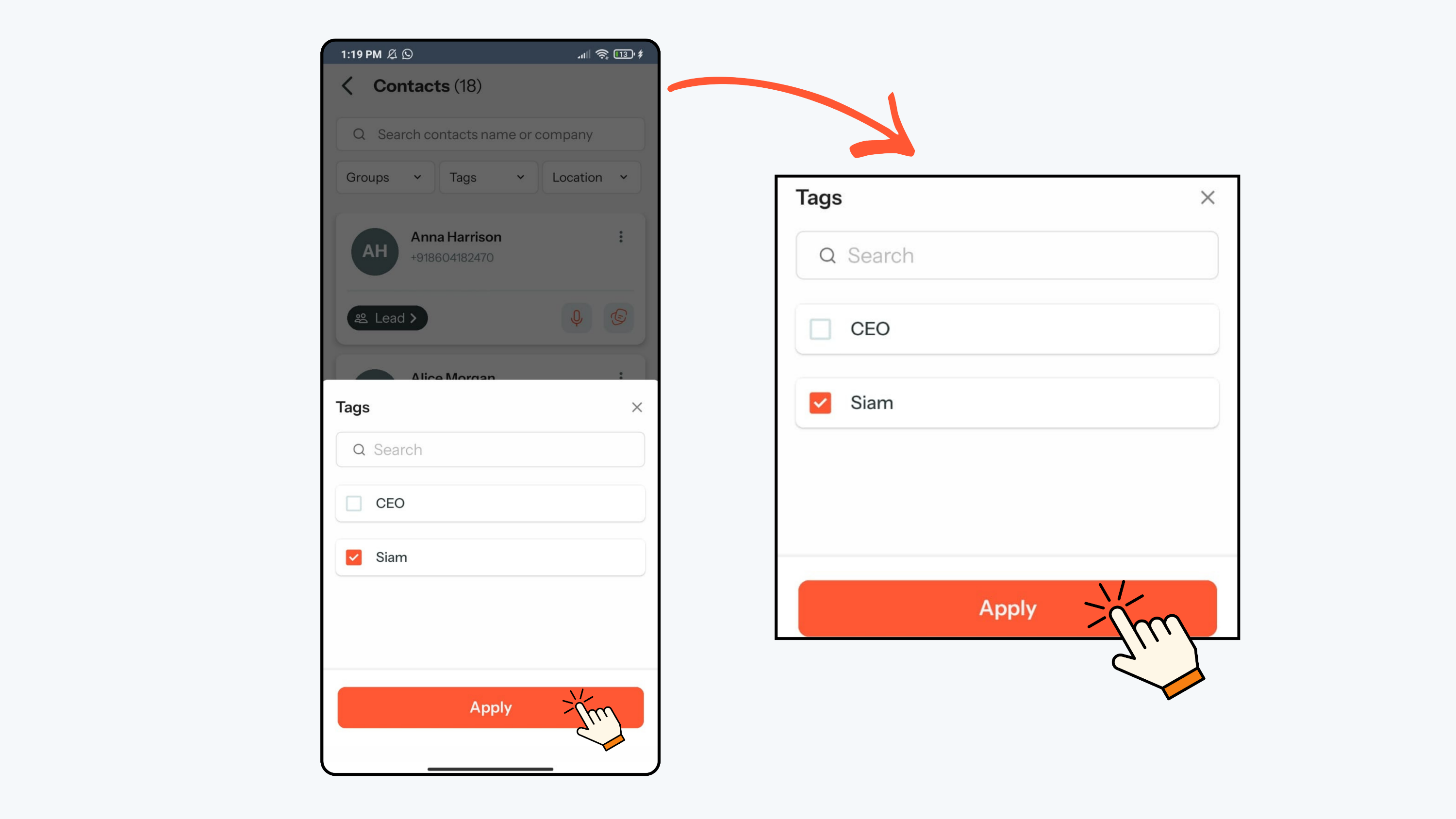 - The Tag filter allows you to find contacts based on the tags you have given.